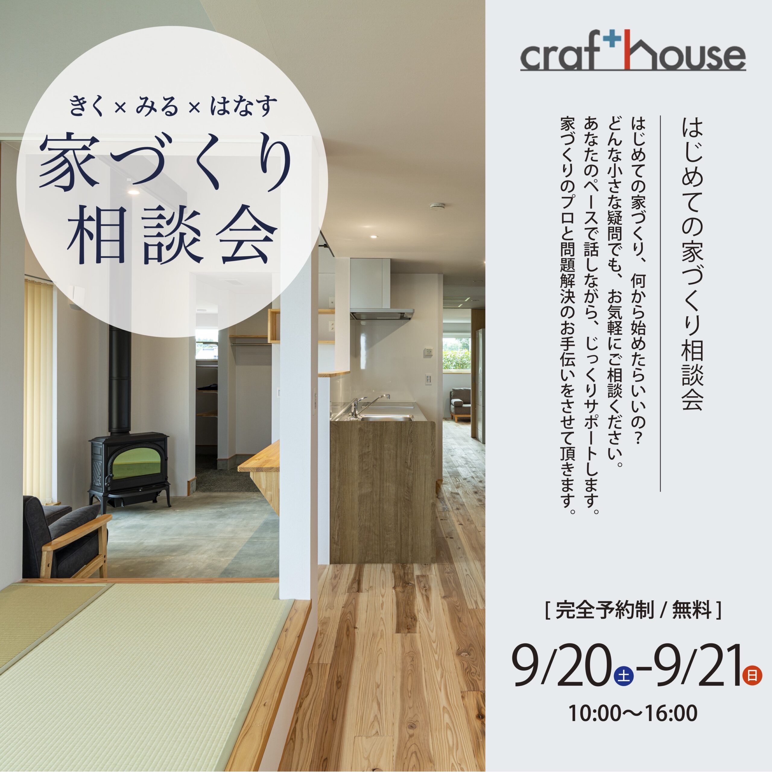 そんな不安や疑問をお持ちの方に向けて、クラフト・ハウスでは「家づくり無料相談会」を開催します。